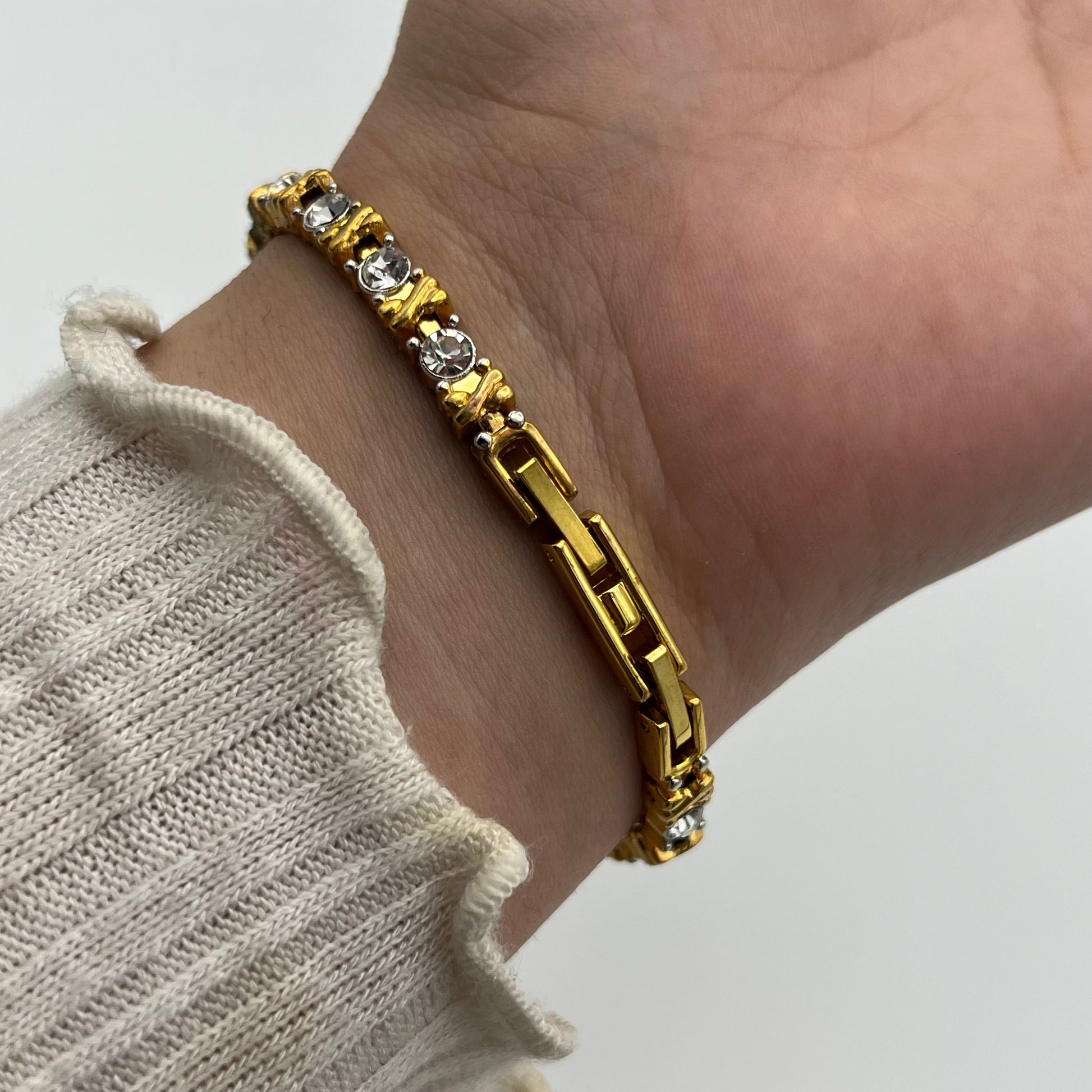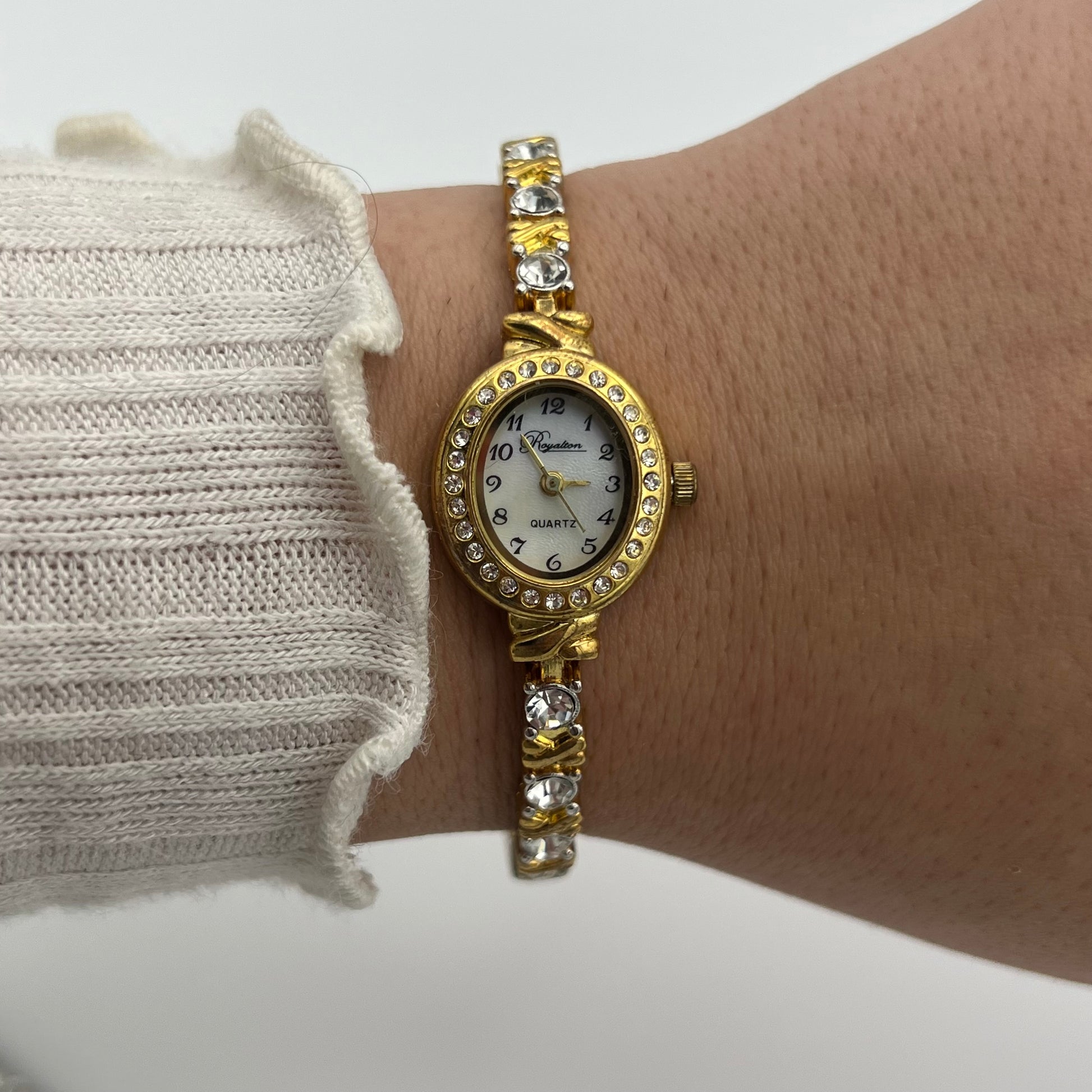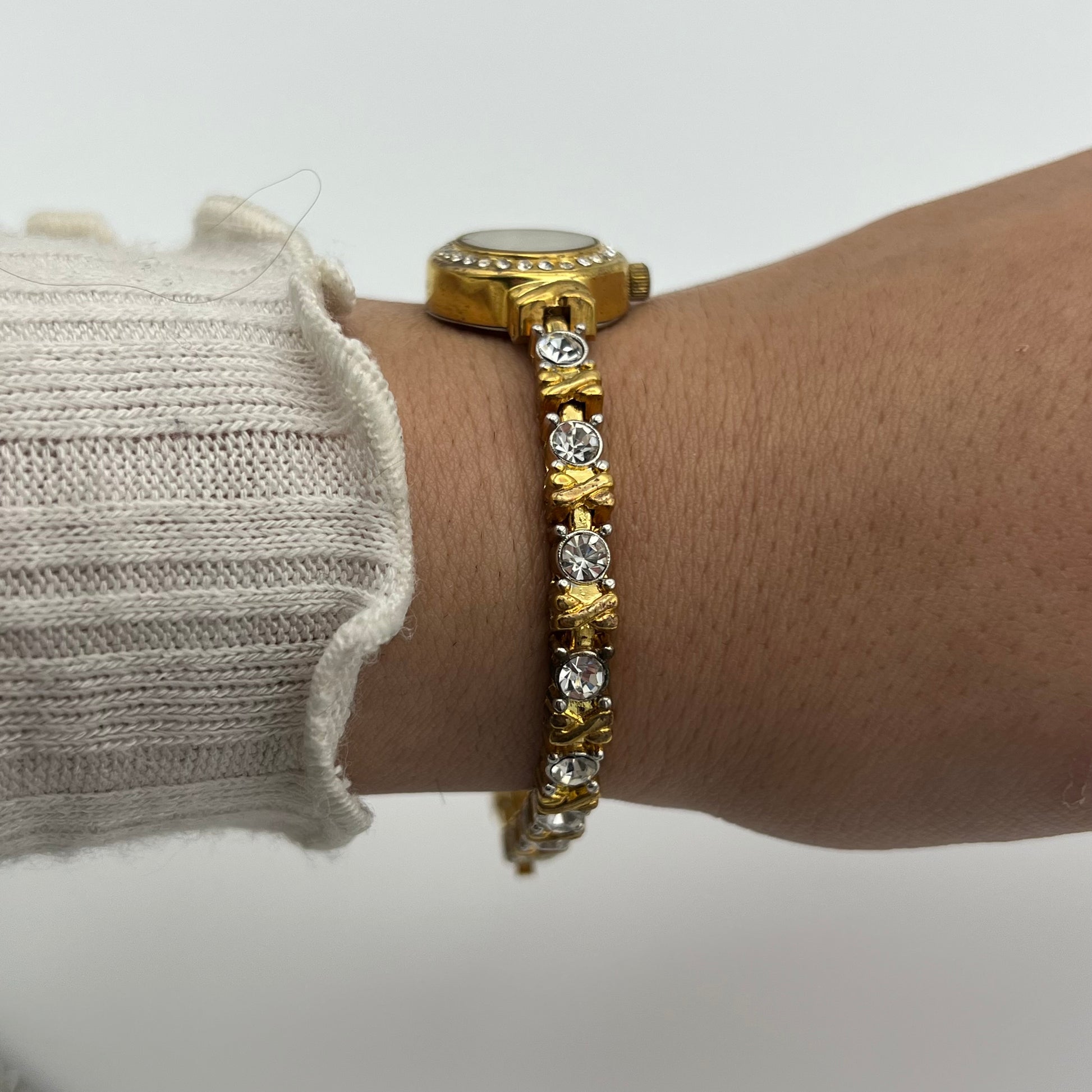 Gold-Toned Diamanté Tennis Bracelet Watch with Mother of Pearl Dial