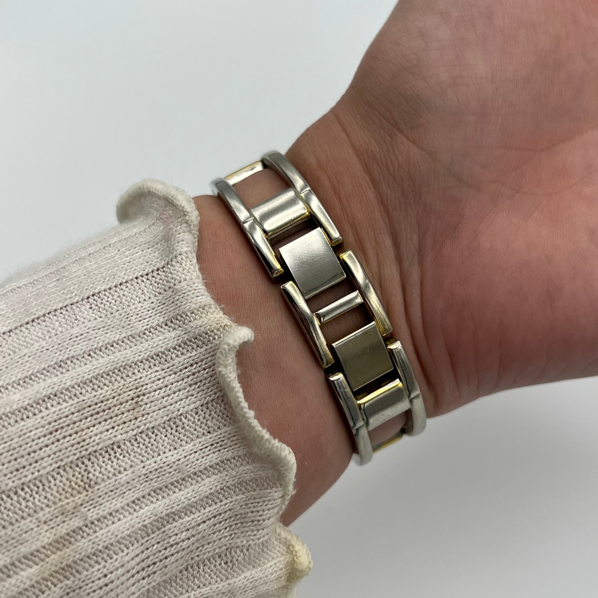 This elegant two-toned watch combines classic style with versatile wearability, featuring a blend of silver and gold tones to complement any outfit. Its durable design ensures long-lasting use, while the clear, easy-to-read dial helps you stay punctual and confident throughout your day. Perfect for both casual and formal occasions, this watch offers reliable performance with a touch of sophistication.