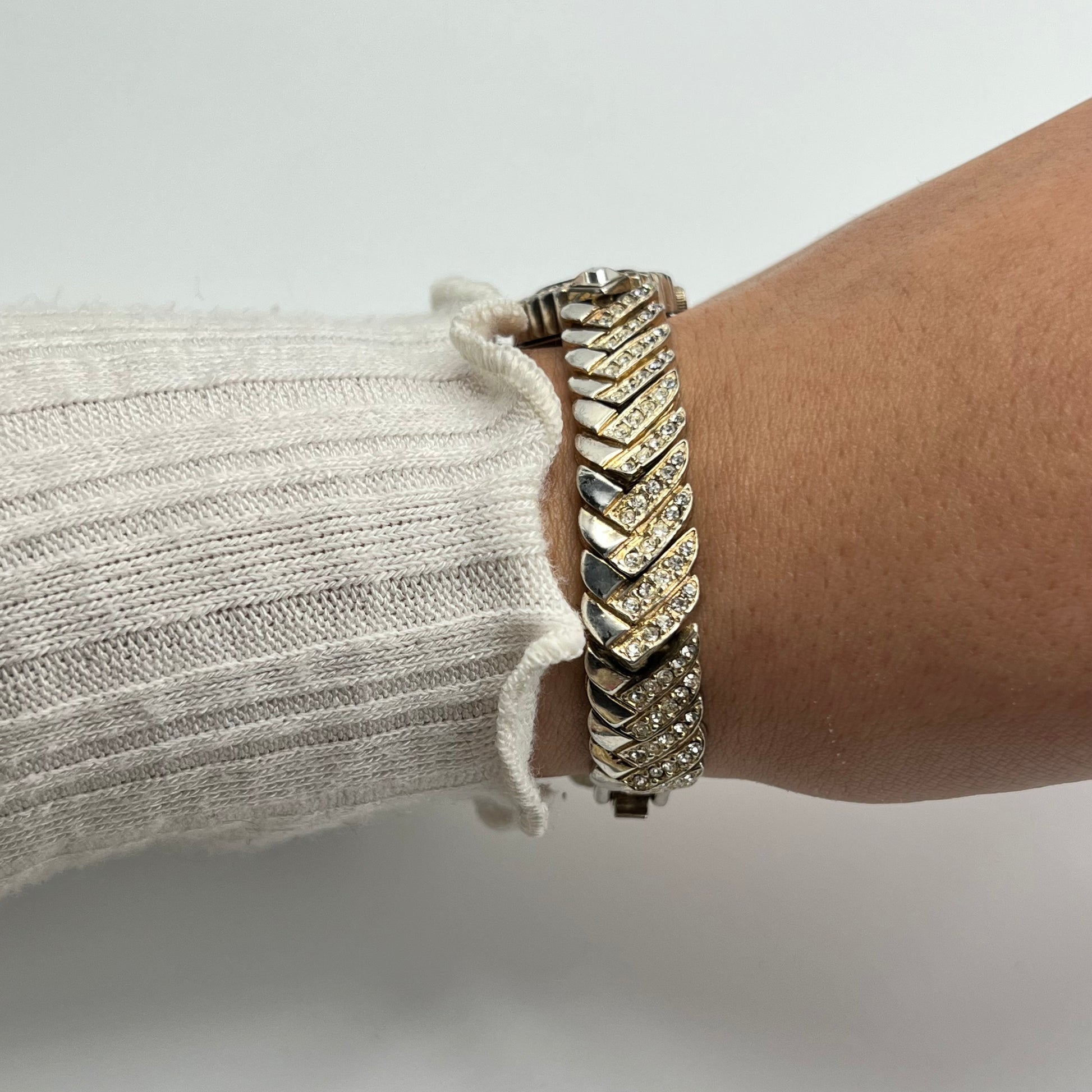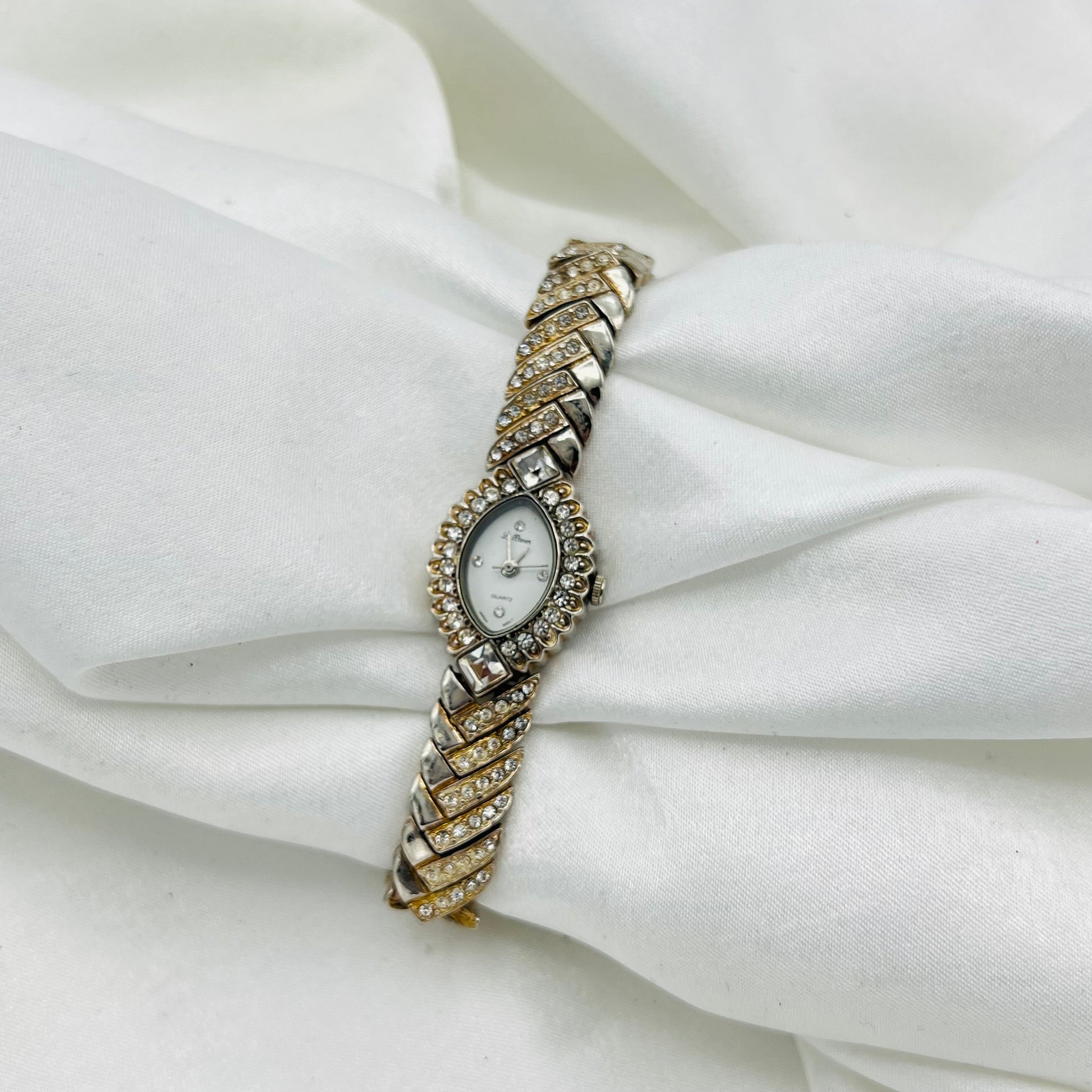 This elegant two-toned watch combines classic design with a sparkling diamanté strap, adding a touch of glamour to any outfit. Its versatile color scheme complements both casual and formal looks, while the comfortable strap ensures all-day wear. Perfect for those who appreciate timeless style with a hint of shine.