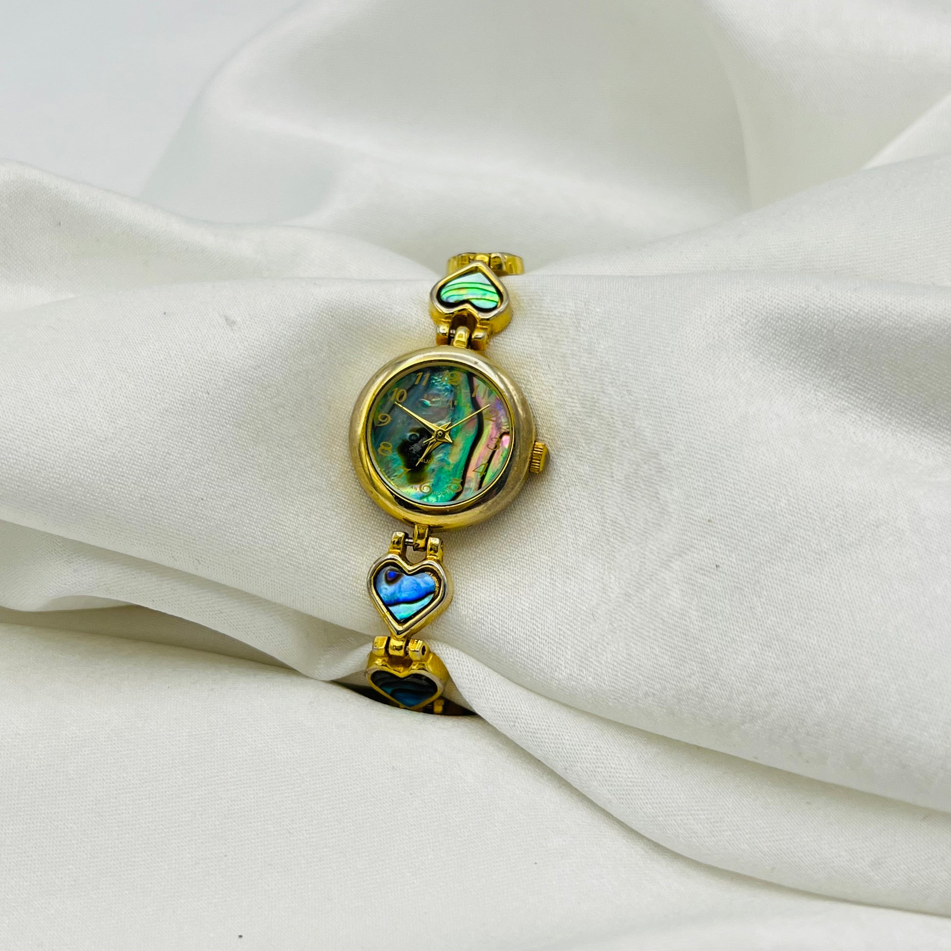 Make every moment sparkle with the Abalone Heart Strap Watch. Featuring a vibrant abalone shell dial that shimmers with every move, this playful watch adds a splash of color and charm to your wrist. The heart-shaped strap detail brings a touch of whimsy, perfect for brightening up any outfit or day. Durable yet delightful, it’s a fun accessory that keeps you on time and in style.