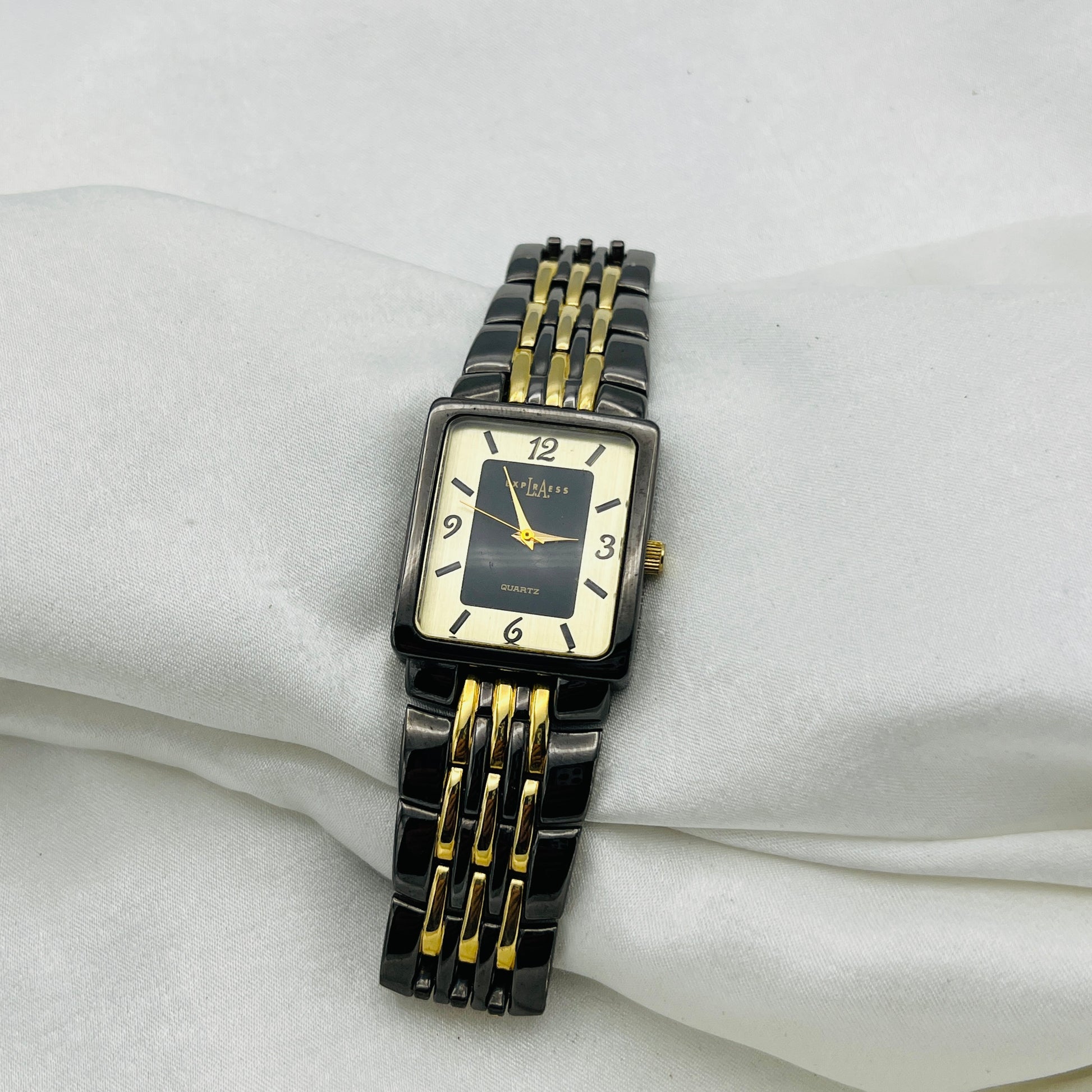 Timeless elegance meets modern edge with this striking Black & Gold Watch. The sophisticated two-tone design pairs a sleek black case with luxe gold accents, creating a look that's equally at home at the office or out on the town. Whether you're dressing up or keeping it casual, this versatile timepiece adds a touch of glamour to any outfit. A perfect blend of style and substance that'll have you checking the time just to show it off.
