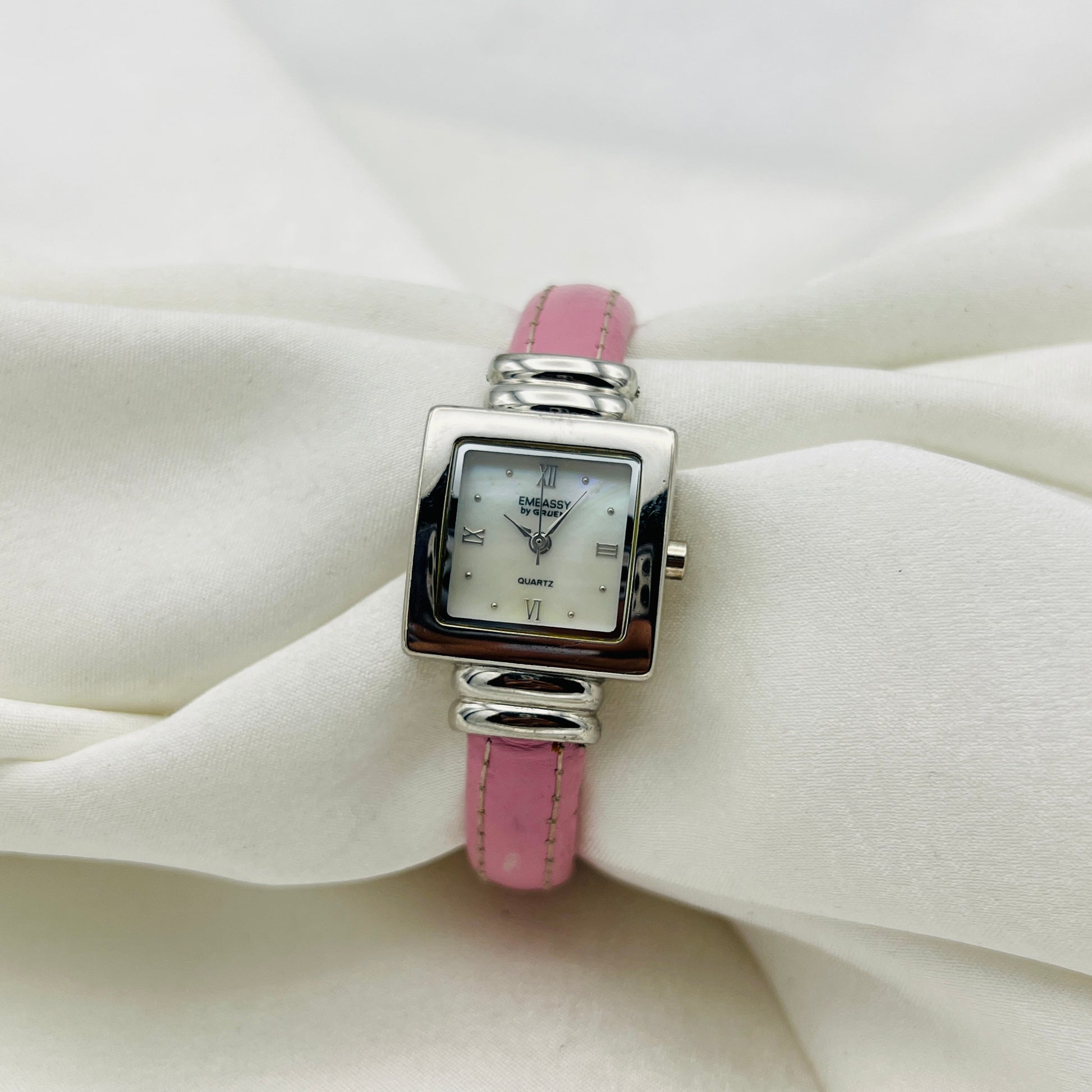 Embassy by Gruen Pink Leather Watch with Mother of Pearl Dial