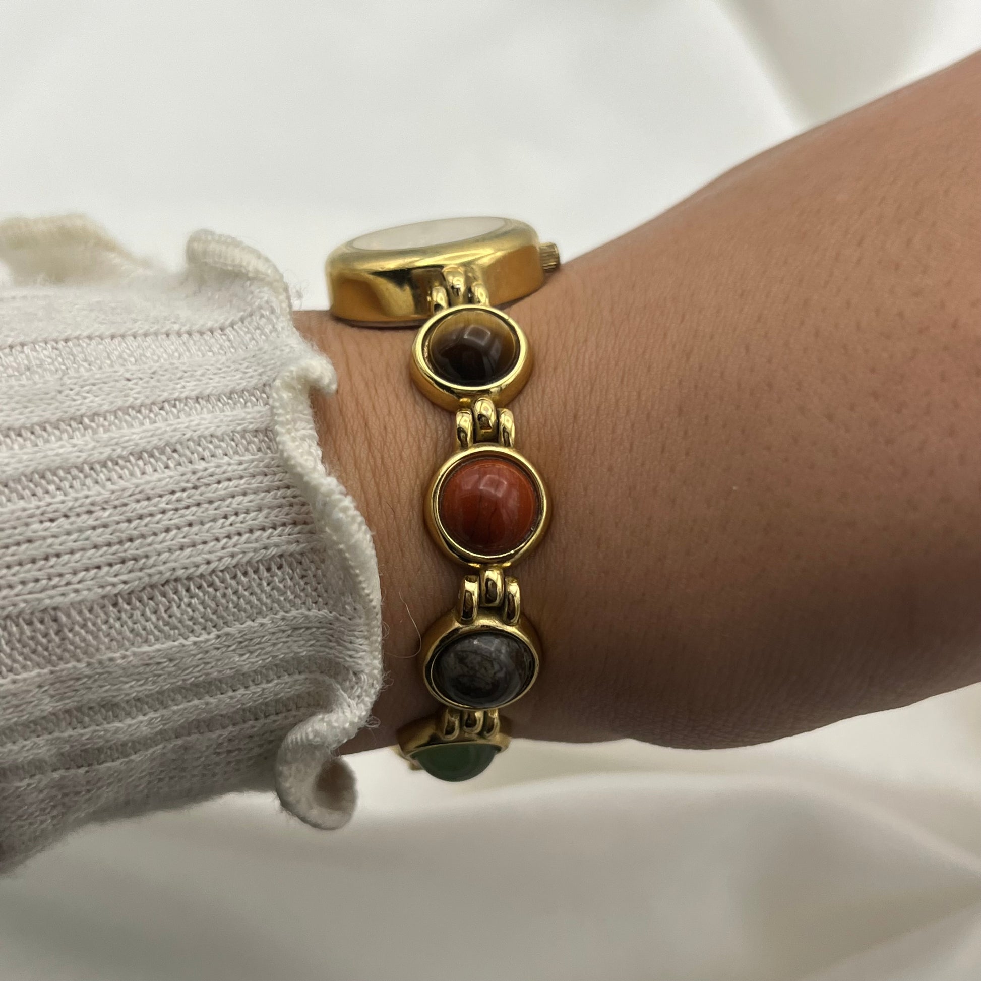 Sparkle through every moment with our Gemstone Watch—where timekeeping meets dazzling style. This eye-catching timepiece features genuine gemstone accents that catch the light beautifully, making it the perfect accessory for anyone who loves a touch of glamour. Whether you're heading to brunch or a night out, this watch keeps you punctual while turning heads. Precision meets personality in one stunning design that's sure to become your favorite conversation starter.
