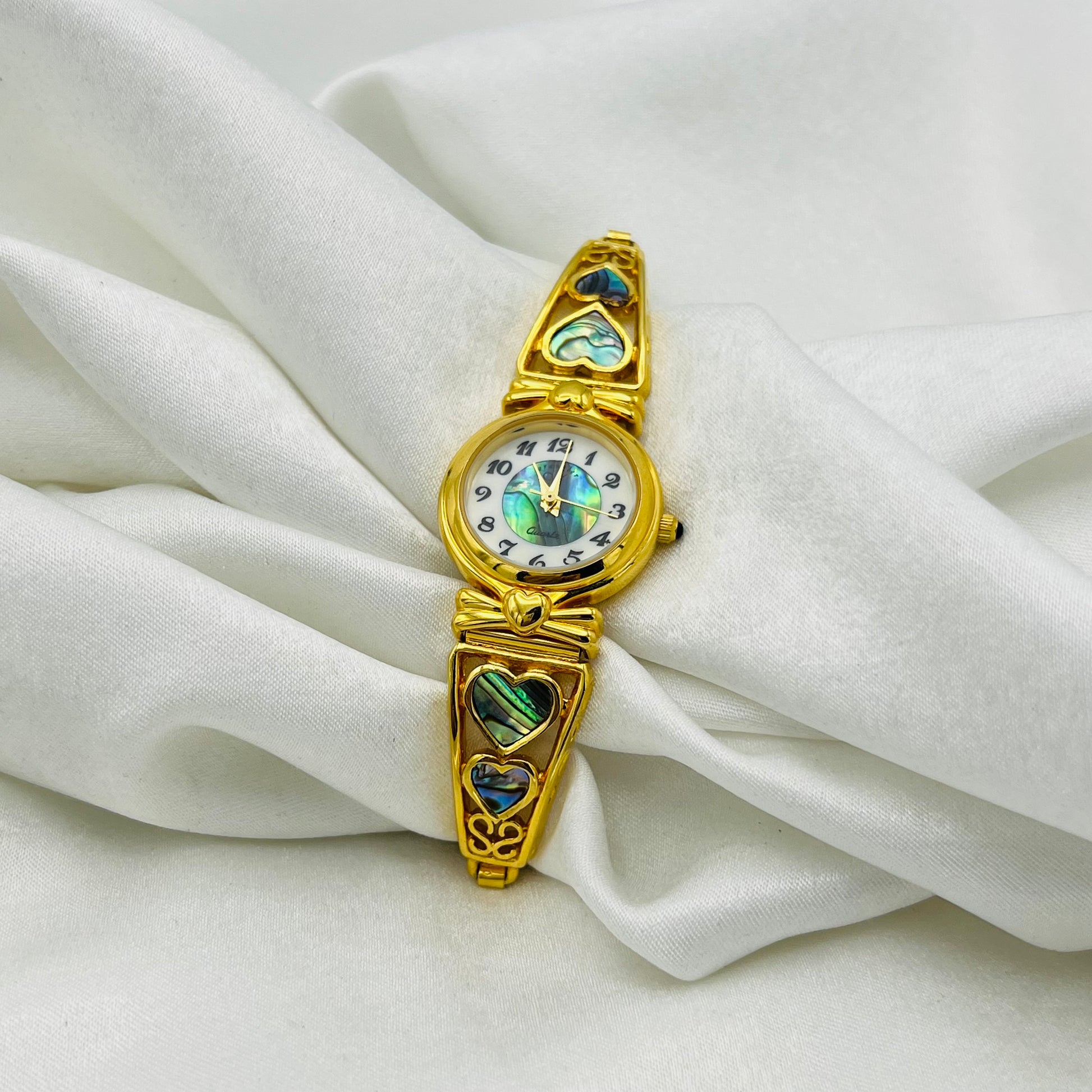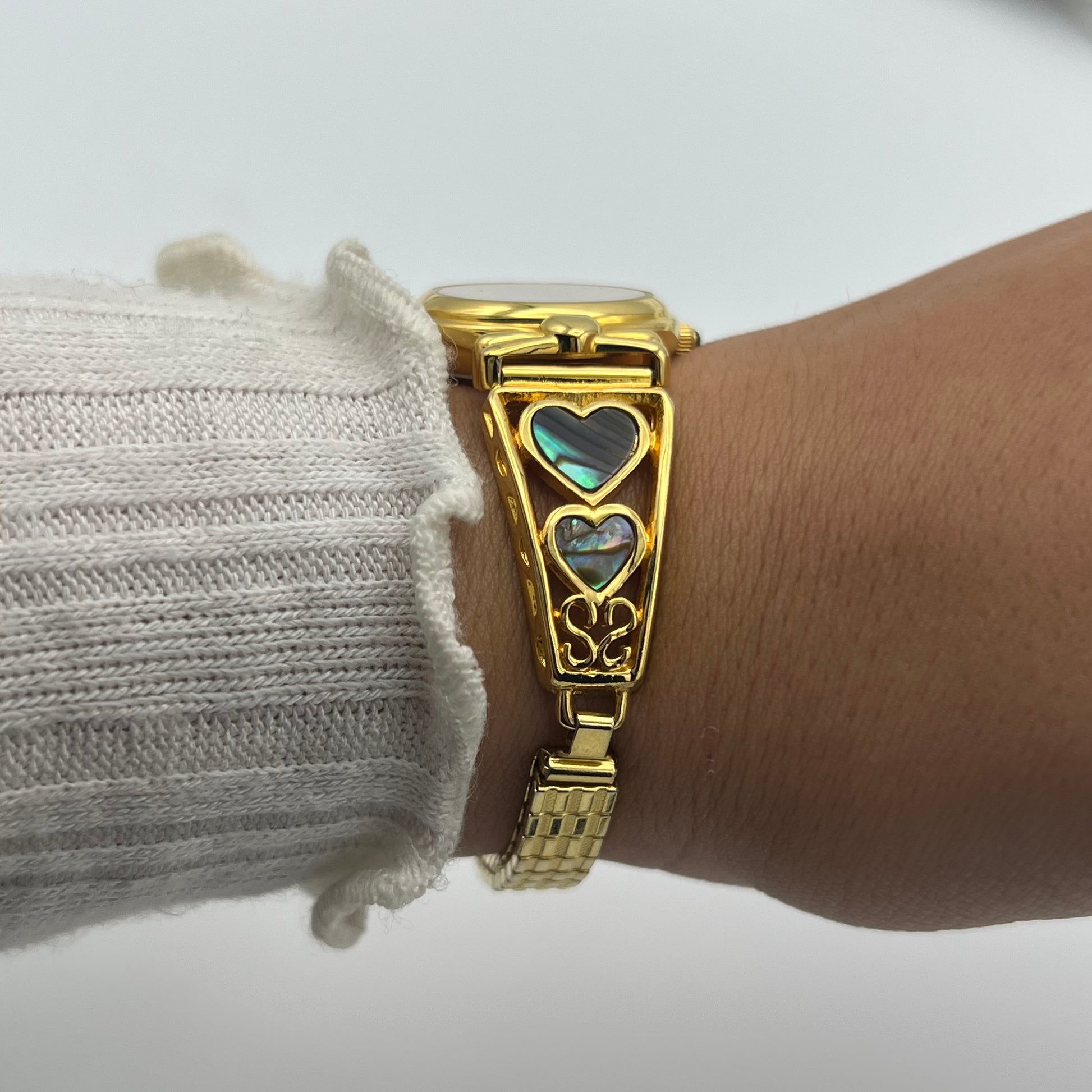 This elegant Gold-Toned Abalone Heart Watch combines timeless style with a unique touch of natural beauty. The shimmering abalone heart detail adds a delicate, iridescent accent to the classic gold-tone finish, making it a versatile accessory for everyday wear or special occasions. Designed for comfort and durability, this watch supports your busy lifestyle while adding a subtle charm to any outfit.