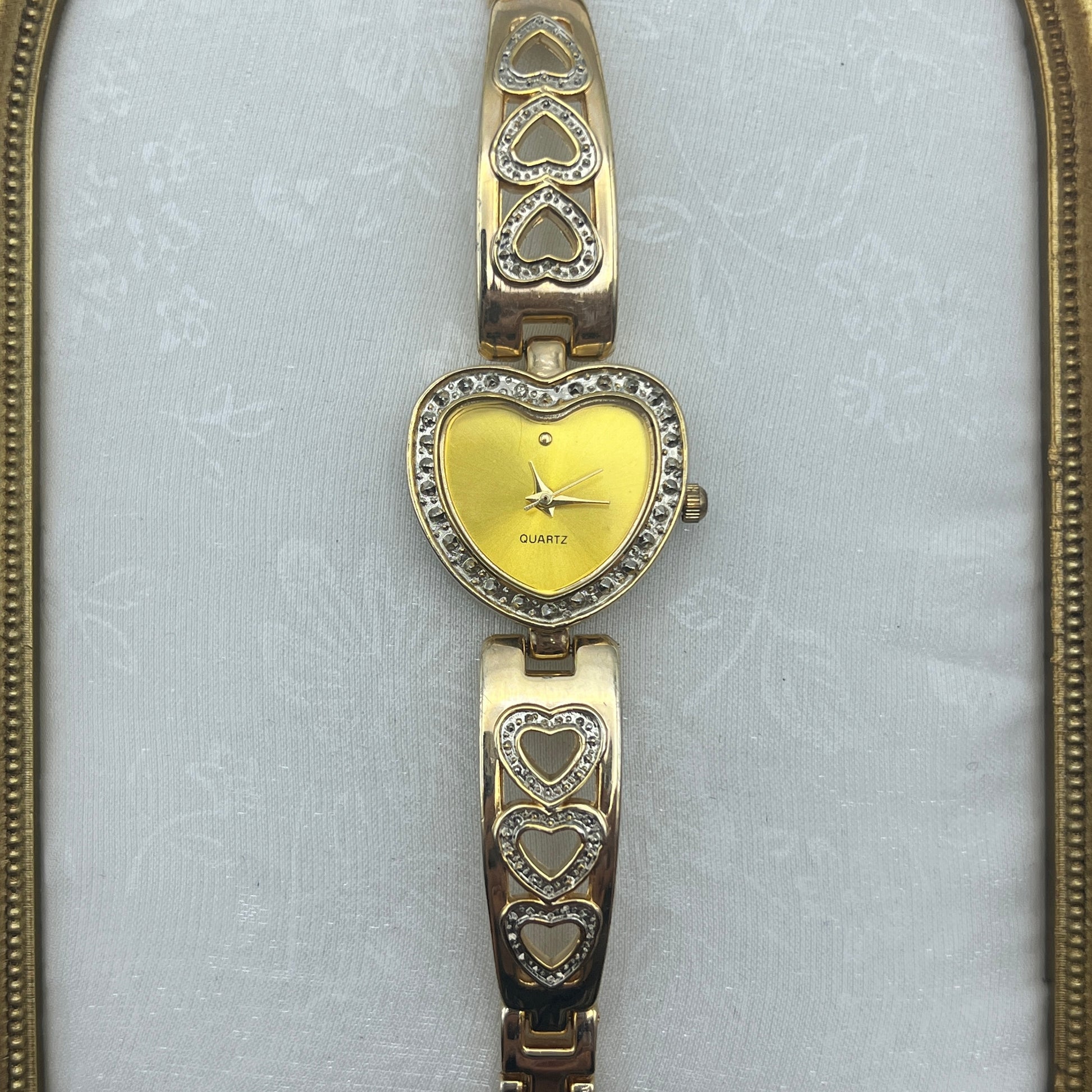Gold Tone Heart Watch with Champagne Dial