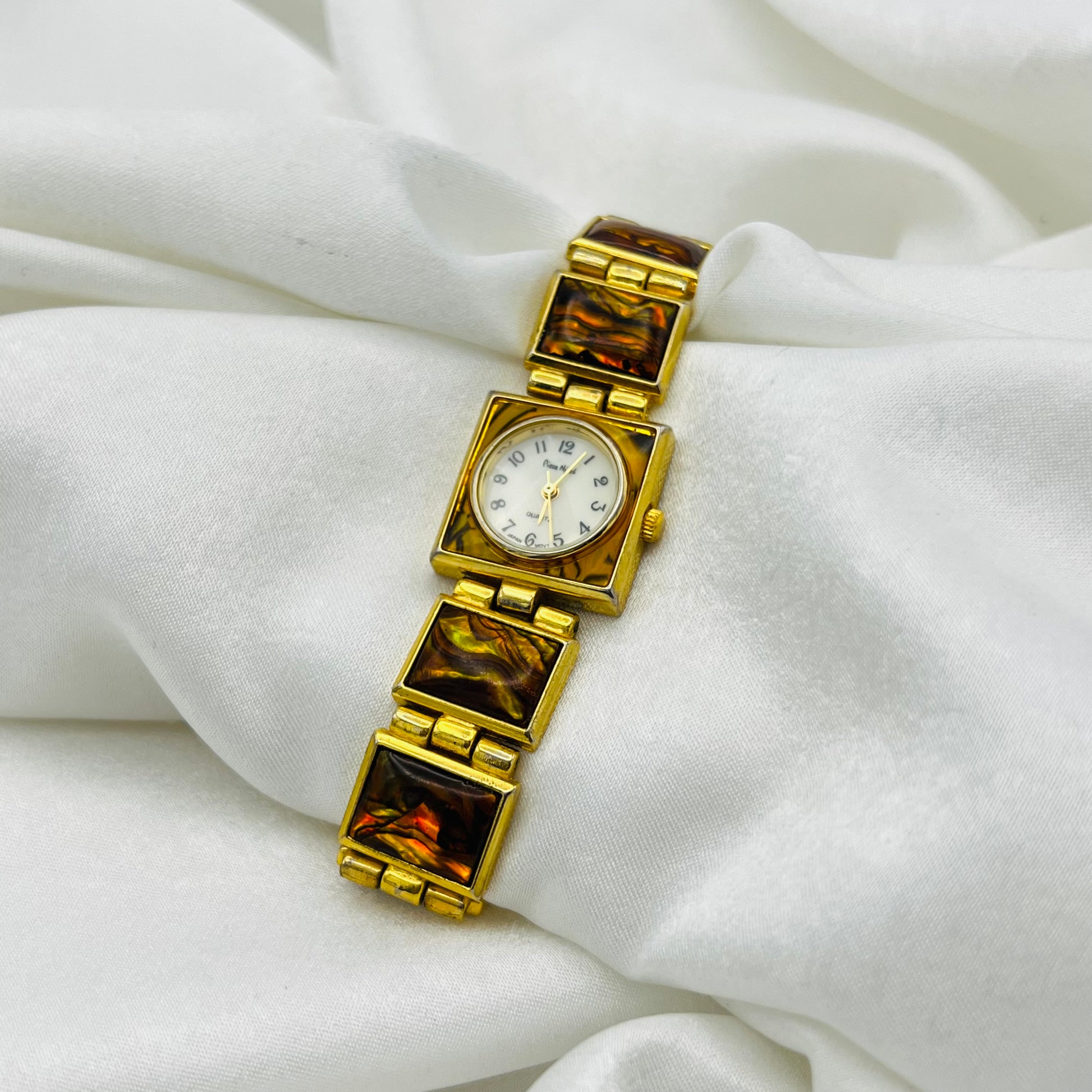 Catch the light and turn heads with this stunning Golden Abalone Watch. Featuring a mesmerizing abalone shell dial that shifts through iridescent blues, greens, and purples with every movement, this timepiece is pure magic on your wrist. The warm golden case complements the natural beauty of the abalone, creating an eye-catching contrast that's both elegant and whimsical. Perfect for adding a splash of personality to any outfit, this watch proves that keeping time doesn't mean sacrificing style. A conversation starter that's as fun to wear as it is to admire.
