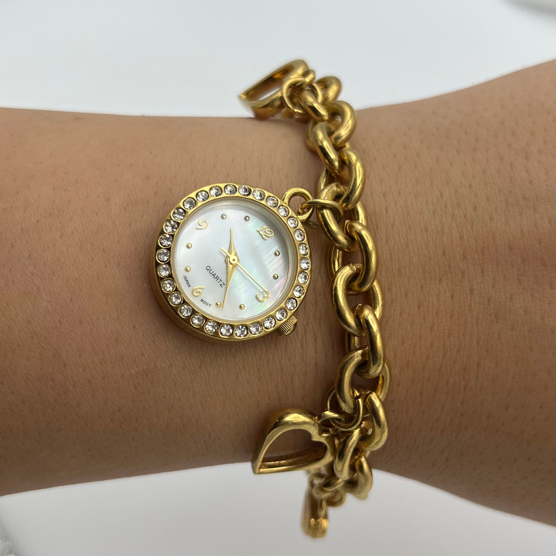 Fall in love with our Heart Charm Bracelet Watch. Not only is it a stylish and functional timepiece, but it also features a beautiful heart charm that will add a touch of romance to your look. Stay on time while showing off your love for fashion with this charming accessory.