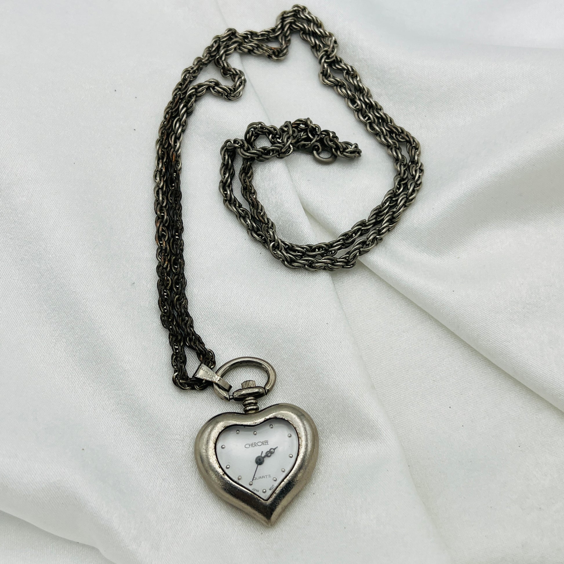 Wear your heart on your wrist—literally! This charming silver-toned necklace features a delicate heart-shaped watch face that doubles as a timepiece and conversation starter. Perfect for adding a touch of whimsy to your everyday style, it combines romantic flair with practical functionality. Whether you're dressing up for a special occasion or keeping it casual, this sweet accessory keeps you on time while keeping your look effortlessly chic.