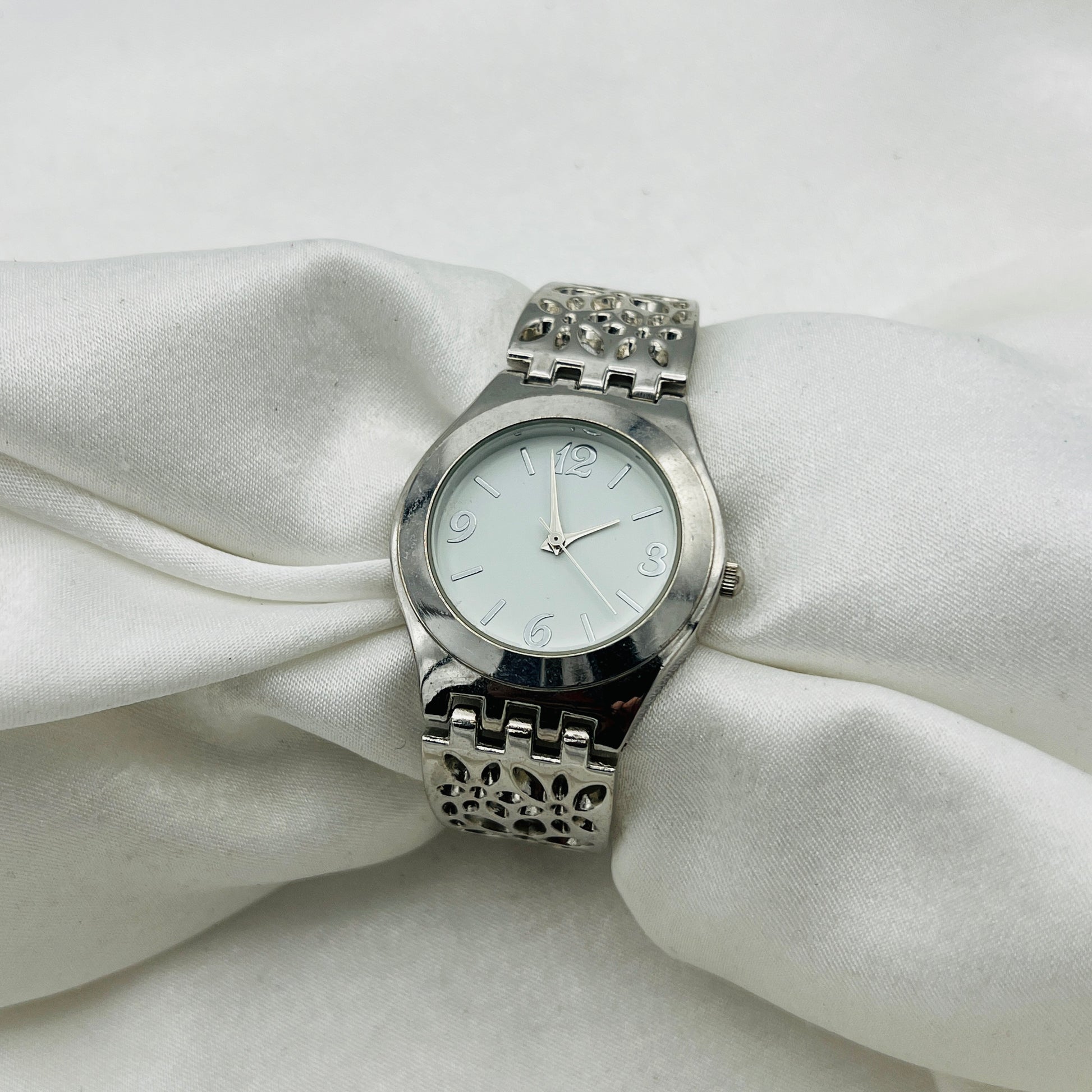 Bloom into timekeeping with this charming silver-toned watch, where delicate floral details dance around the dial. Perfect for adding a touch of garden-inspired elegance to your everyday style, this timepiece combines classic sophistication with whimsical botanical flair. Whether you're heading to brunch or a special occasion, let this pretty accessory keep you on schedule while turning heads.