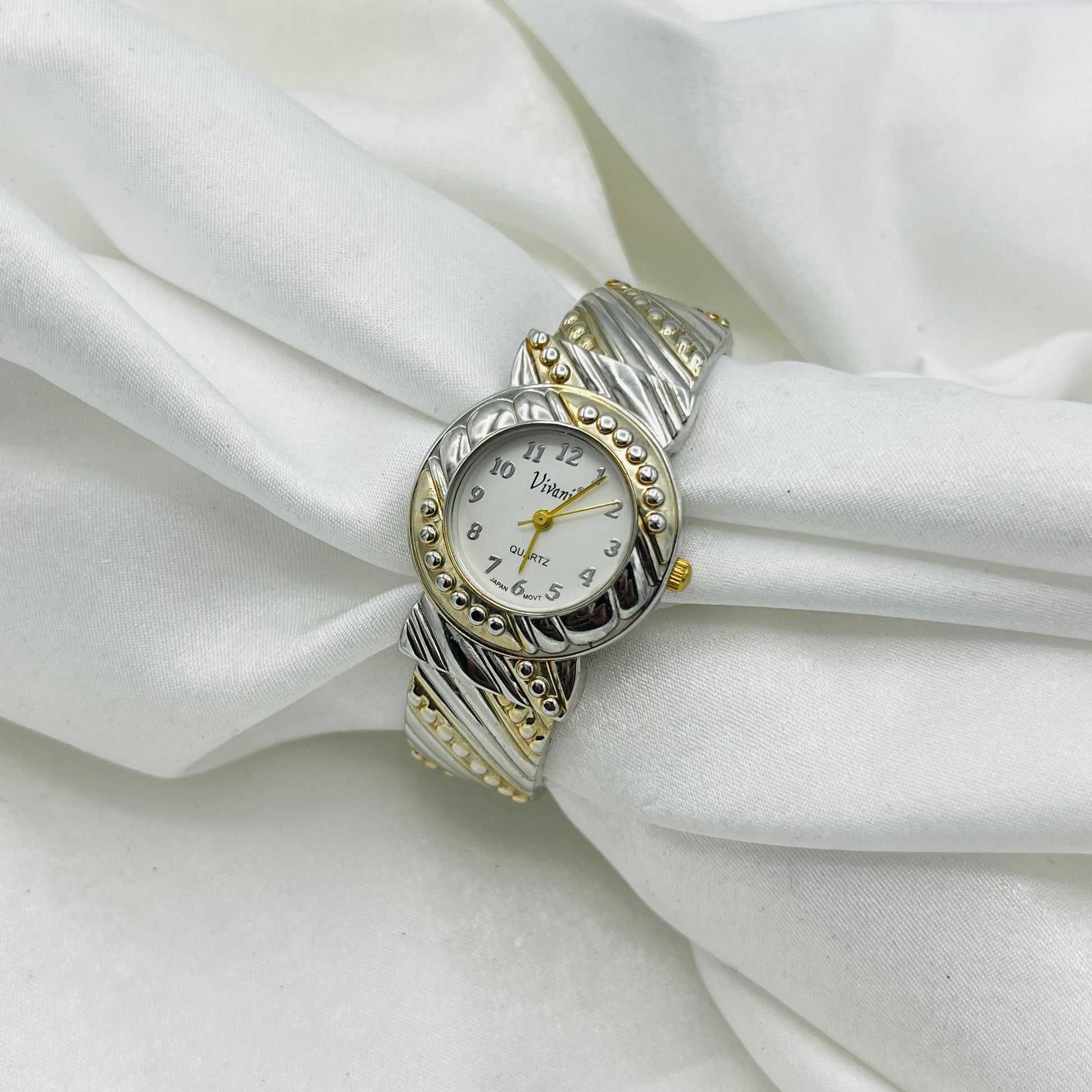 Indulge in impeccable style with our Two-Toned Round Dial Watch. Featuring a classic round dial design with a modern two-toned twist, this watch exudes elegance and sophistication. Keep track of time in luxurious fashion with this must-have accessory.