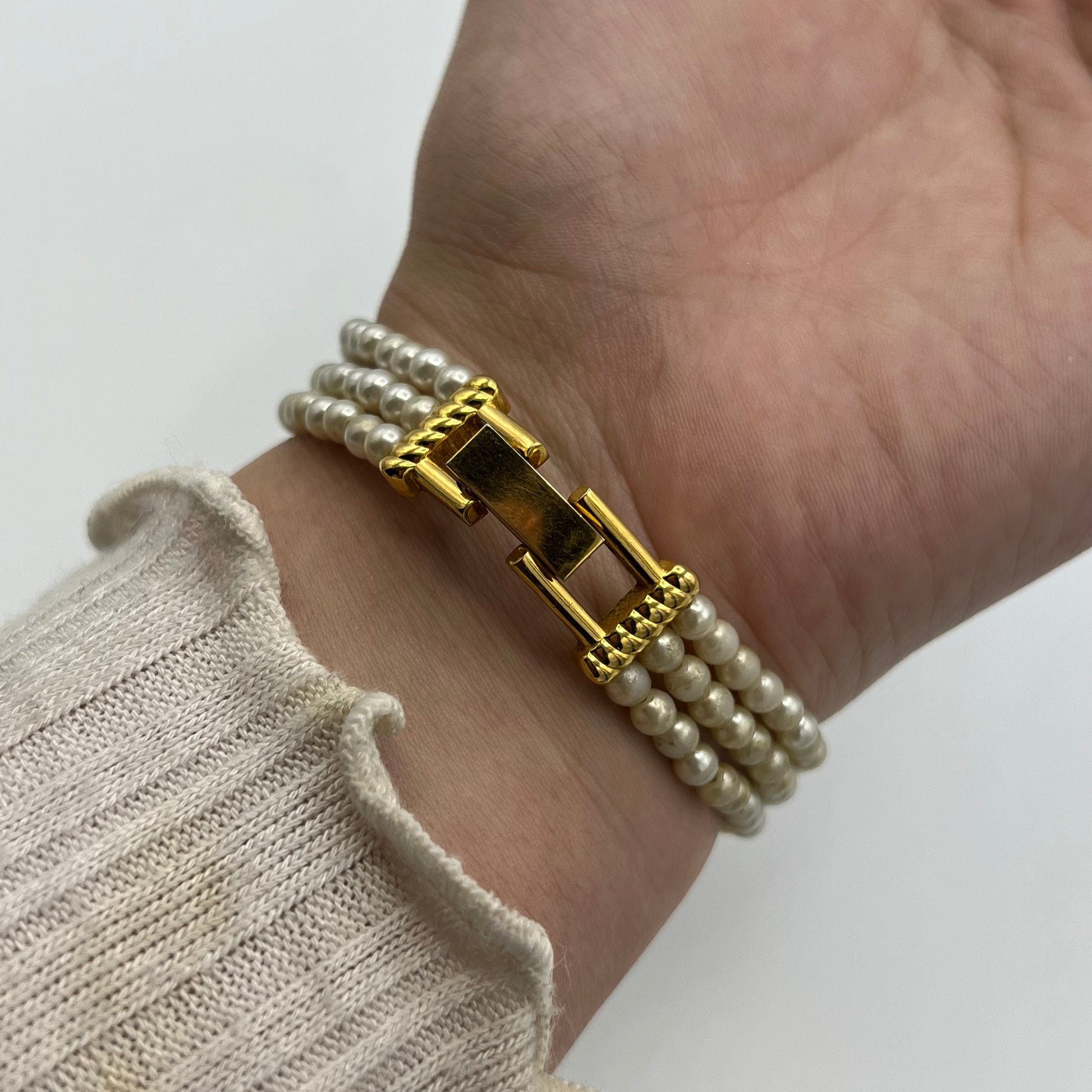 White Beaded Gold-Toned Watch